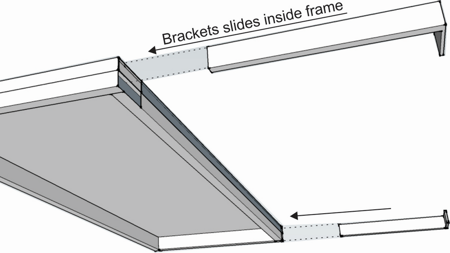 The awning frame slides over the brackets