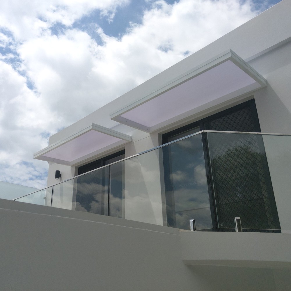 The Slimline 100 features a fully welded 100x50mm aluminium frame for strength and a refined finish. Its concealed bracket system hides all fixings inside the frame, creating a seamless, floating appearance. Designed for modern homes and commercial facades, it delivers maximum strength with a clean, minimalist look.